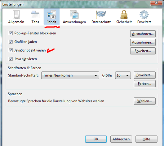 Beispiel: Java Script aktivieren Mozilla Firefox